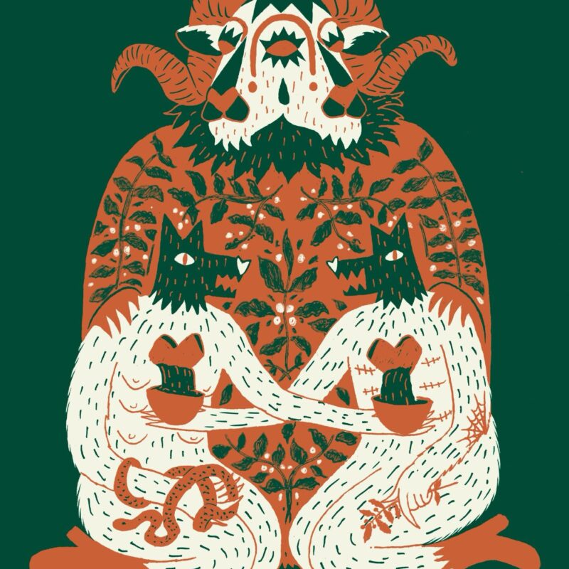 Nuestra divinidad, quien da vida a quien toma de ella. Amorfa y tripartito, brinda de su mano a dos seres que despiertos y realizados se afectan entre sí.